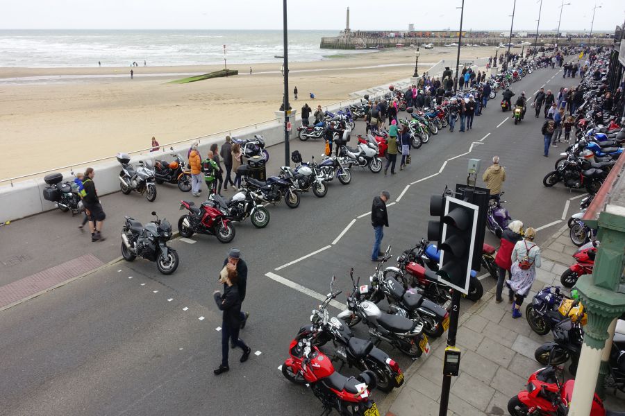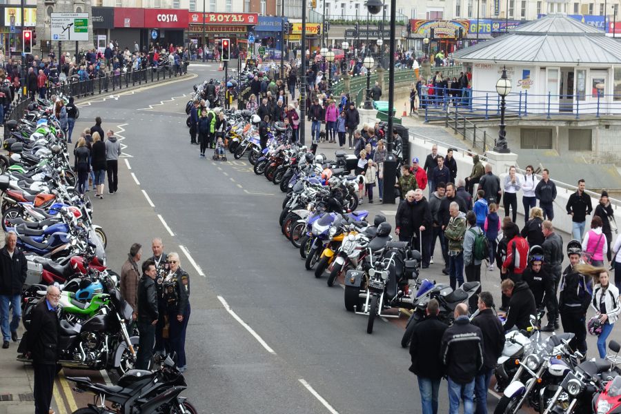 "Every year Margate is subjected to a friendly invasion of motorcycles. Good humour prevails and there is no rioutous Hells Angel behaviour akin to the battles of bikers and scooterists of the early 60’s 'mods and rockers' punch ups on the beach, but a celebration of all things on two wheels."